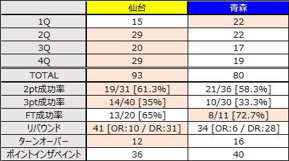 ○ 仙台 93 - 80 青森 ●